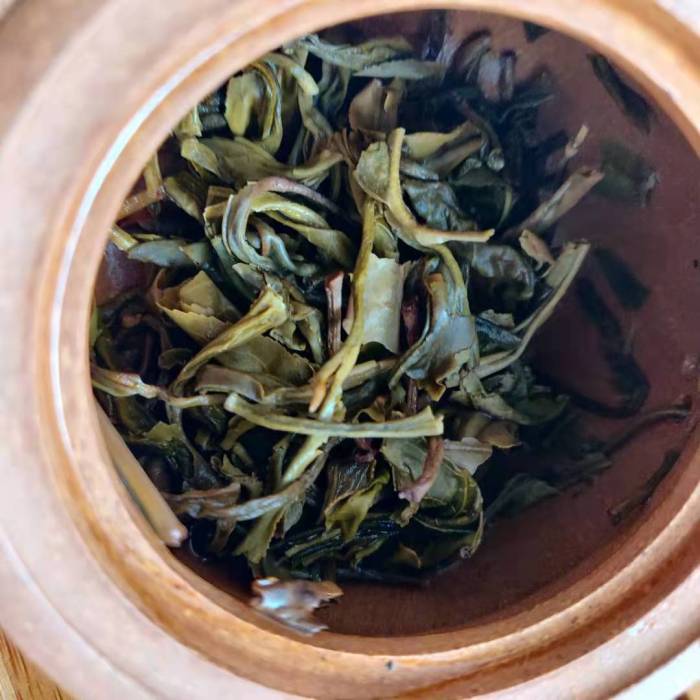 The advantage of loose compression is that they cake will age more evenly. In addition, it won’t take much effort to loosen up the cake to start your tea session. As for this cake, it’s pretty much possible to loosen up some leaves by hand without breaking them.